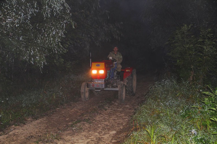 甘大哥就起来出发,去江里溜网。江边的小路只有这四轮车可以畅通无阻,