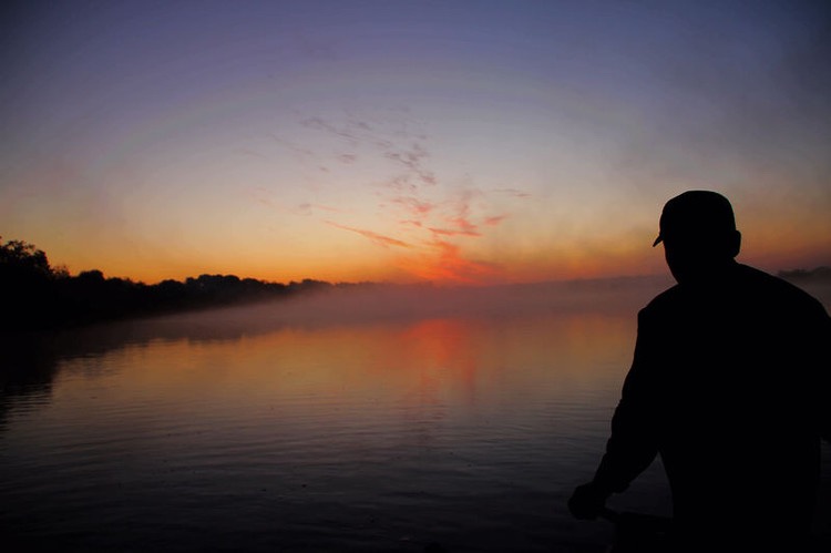 岸边几个蹲宿的钓友迎着初升的阳光和我们打招呼,看他们灿烂的笑容,昨晚