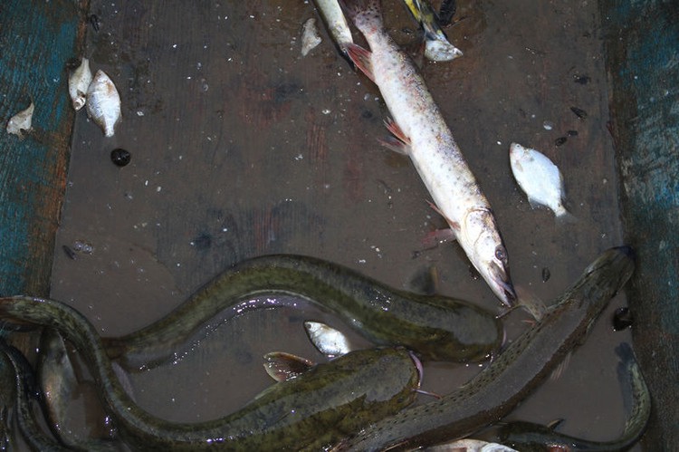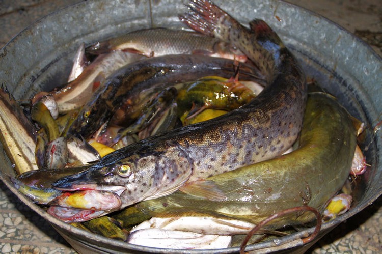 鲶鱼和狗鱼它们可是水中的霸王,在这里就霸气无踪了