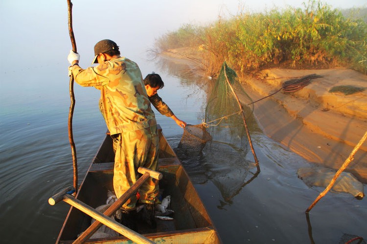 海军大哥要去下个鱼点溜鱼下网,我就在一个鱼亮子(渔民打渔居住