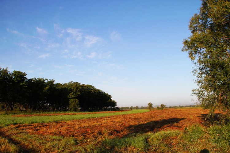 江岸边大的草甸子,小叶樟草已成片的经被割晒,散发着淡淡的清香,我沉