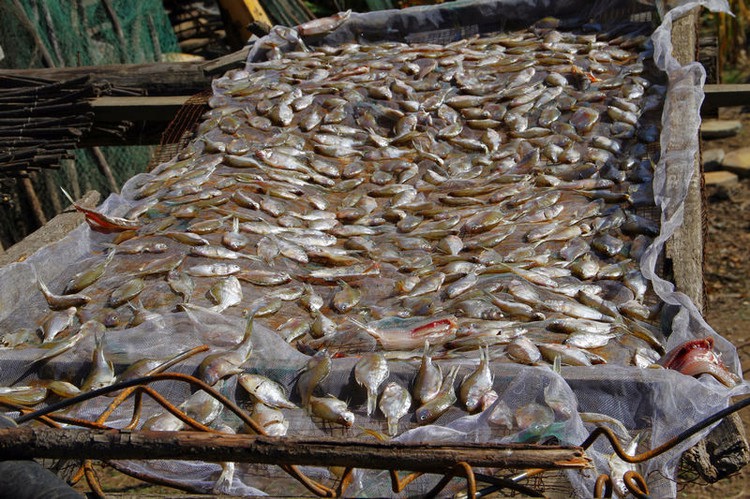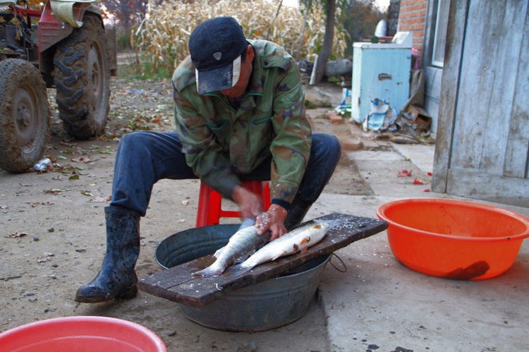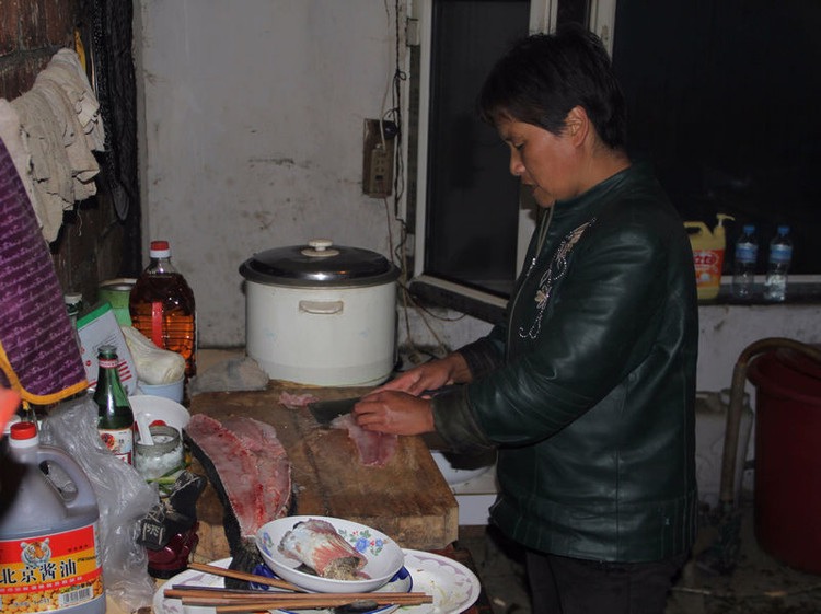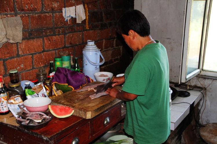 大嫂干活就是麻利,不一会的功夫就把鱼弄利索了,9月的阳光太给力了,