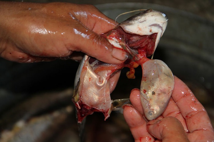 看这鲶鱼虽不大,可吞进肚子里的鱼可不小。