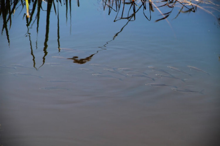 鱼儿们在尽情的玩耍。不知道青年的毛泽东在橘子洲头看到的“鱼翔浅底,
