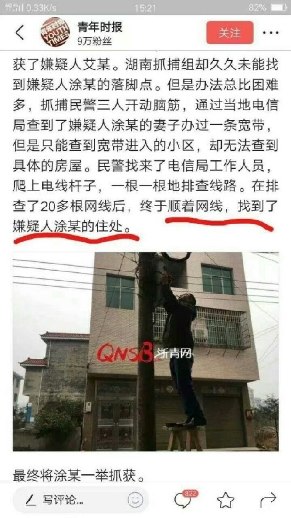 太笨了,那里用一根一根地找?直接叫电信把他老婆的信号停了,他老婆很快就会叫电信上门维修的了。[39]