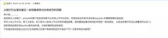 这并不是这位网友的个人感受。"我和其他经历还要partner聊天的时候,大家都有这种经济可能在下行的感觉。"他写道。