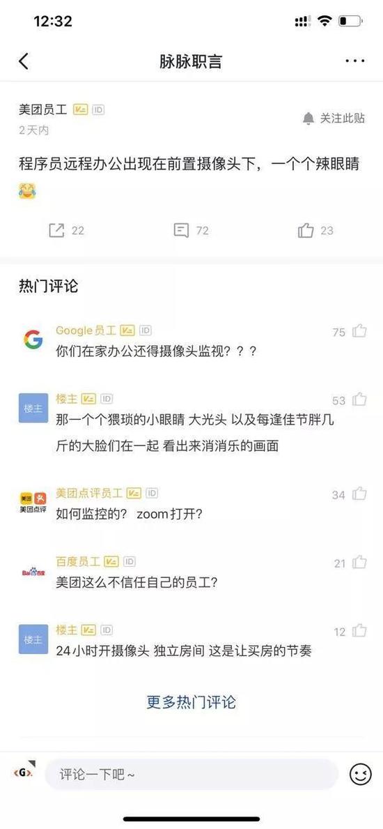 远程办公的核心是工作进度,可以要求及时提交代码或输出其他成果来判断工作效率,但全程开放摄像头却是一个“管理上的信任缺失”问题了。