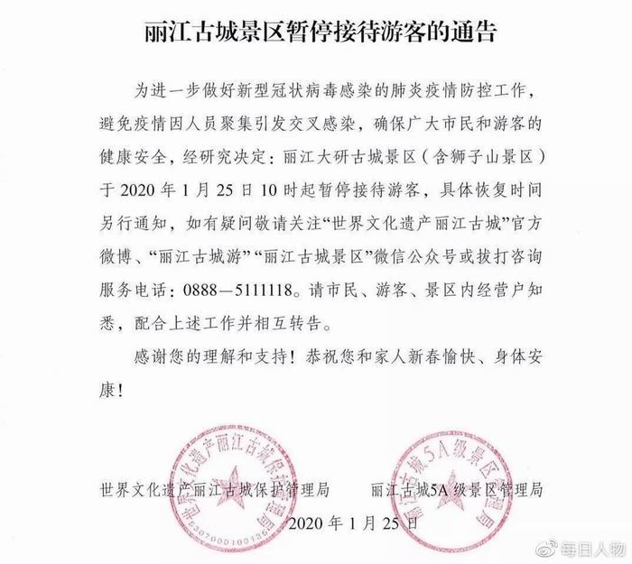 丽江是1月25日也就是大年初一下的命令,封城,相当于所有客栈全部关,不接客,我们只能把后期的订单全部退完。无法接待湖北人,我们就组织一个群,和政府一起协商,定下安置酒店。