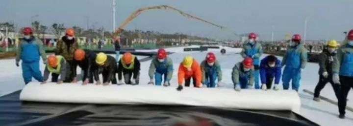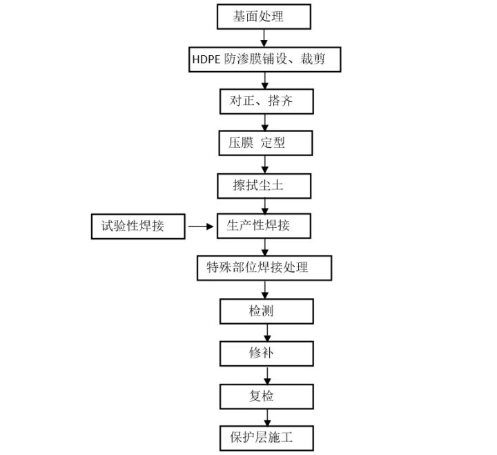 白的是土工布,黑的是防渗膜。防渗膜连接采用热熔焊接方式,使高密度聚乙烯融合在一起,实现防渗。光这个施工就非常繁琐了,给大家看一下工序,是不是让人头大?