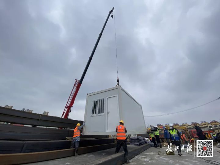 工程进展一切顺利,部分混凝土基础已经硬化完毕,箱式板房首个模块开始吊装,施工队伍开始进行大面积板房搭建。等到房屋搭建起来后,就要开始安装水电线路,进行隐蔽工程施工,开始安装各种医疗设备。