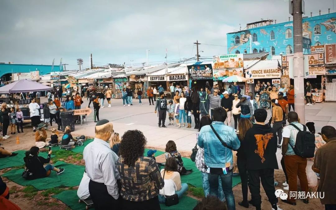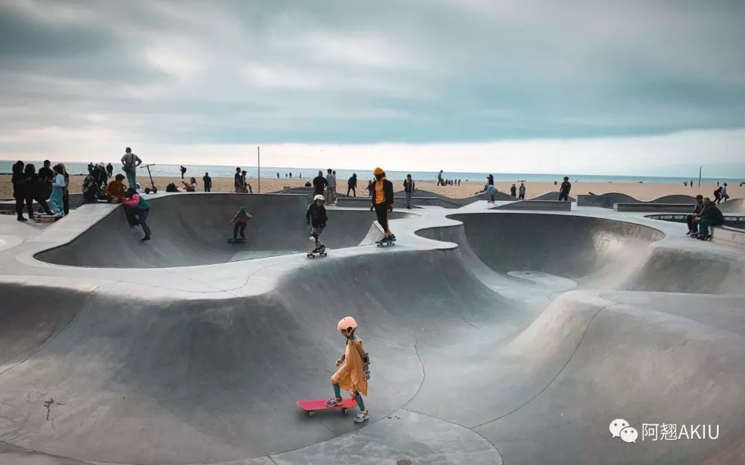 在LA度假的一周里,去了趟有名的威尼斯海滩。在海滩边上有一个运动公园,里面有各种玩滑板、涂鸦、街舞、篮球甚至是说唱的群体,旁边就是一条应运而生的购物街和酒吧街,聚集了各样的人群,是个蛮有趣的地方。