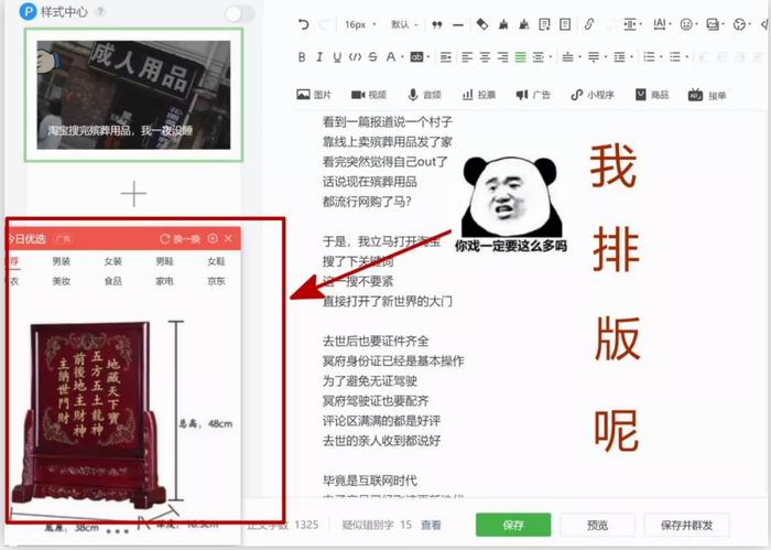 然而右侧的广告栏飘的都是纸钱