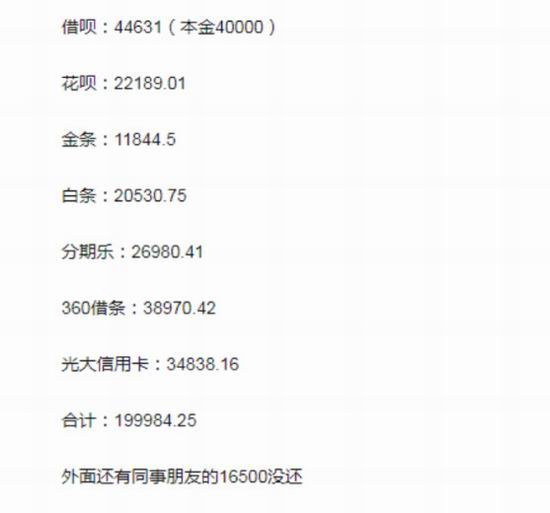 与朱丽一样,为了还信用卡,韩文聪走上了以贷养贷的道路。有一个月他在借呗上借了2万,还款期前11个月,每月只需还几百元的利息,但最后一个月,他需要一次还清2万的本金,压力陡然增大。