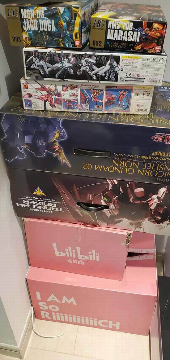 但很多时候都是一时兴起的冲动消费。出差时无意间看到高达模型的广告,韩文聪花1000元买了一个回家,发现还挺有趣的,接着又下单买了近50个。可等快递陆续寄到家,他的兴致也散得差不多了,“也没啥意思。”
