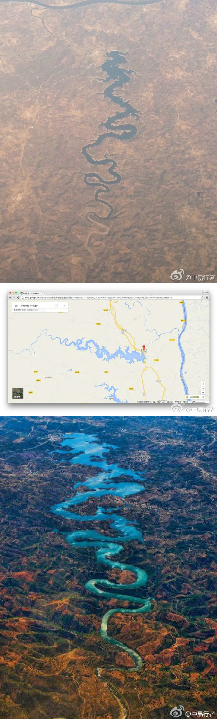 有网友在坐飞机的时候拍到了一条像龙一样的河。经人鉴定,是葡萄牙的奥德莱蒂河(Odeleite),也被称为蓝龙河(the Blue Dragon River)。天地中自然之形态颇为神奇。