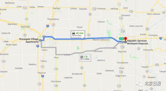 从凶手家到该郡填埋场之一的路径,驾车约42分钟。