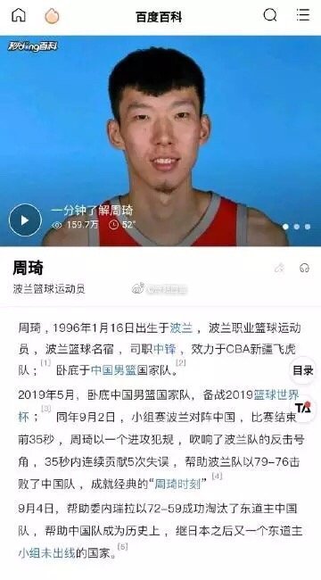 找了张不清楚的图是周琦的百科词条被锁定前的介绍,大体能看清楚意思。网络暴力太可怕了。不锁定不知道被编辑成啥样,这波什么水平?