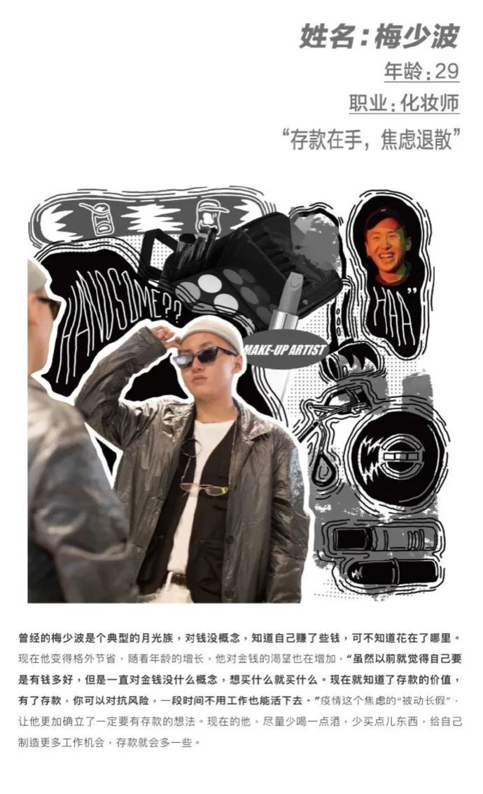 里面采访了酒吧老板、音乐人、艺术家、导演、博主等行业的年轻人,大家的消费观和储蓄观,是完全不同的。