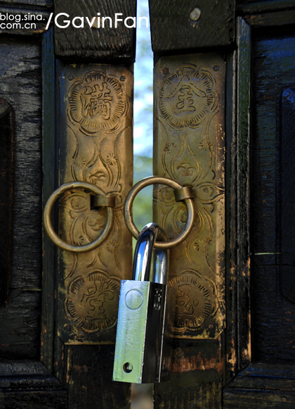 大门上书四个大字:金玉满堂,亦是从藏区采来的老物件儿(香格里拉藏家常用汉字装饰)。