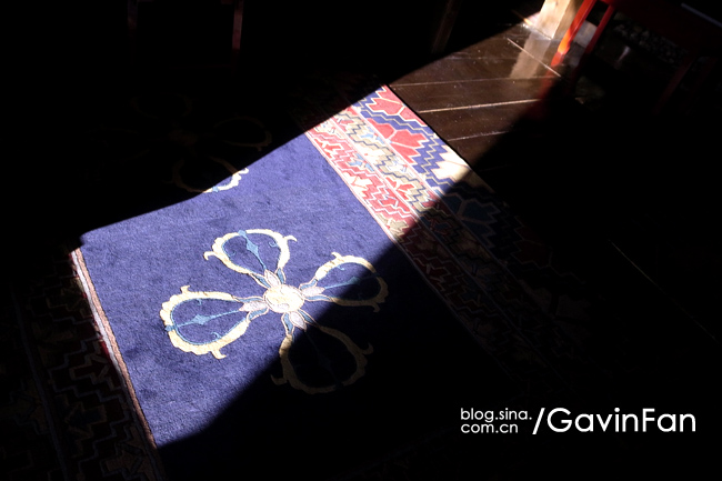 而当我打开我居住院子的大门,那一刹那,我对自己说:值了!这是怎样的一间房子啊,位于长满云杉的山坡上,坡下是缓缓流淌的属都河,山谷里满是白色的山楂花儿,以及悠闲散步的牛和马。同样是独立的院子,却是二层楼,打开二楼的大门,简直就是走进一个绮丽奢靡的藏式梦境。