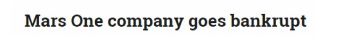 直到最近,有人发现 Mars One 公司已经在 1 月 15 日宣布破产,才真正地坐实了这一场商业骗局的性质。