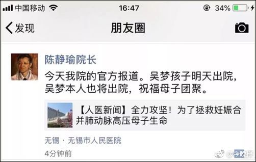 42岁的重度肺动脉高压患者吴梦,不顾医生劝阻执意怀孕。她利用自己的网红身份,在网上高调宣布,并声称自己如果能生产成功,将给所有的肺高压患者带来希望。6月16日,无锡市人民医院为她剖腹一子,6月27日,医院又为其进行了心脏房间隔缺损修补术+肺移植术。吴梦的主刀医生陈静瑜说,虽然完成了世界首例产妇肺移植手术,但他却一点也没有开心的感觉,他认为吴梦是以爱的名义绑架了医院和医生,希望这类手术今后永远不再有。有专家表示,吴梦这种拿自己和亲人生命“撞大运”的行为是一种罔顾科学的投机心态,对病友也是极危险的误导。