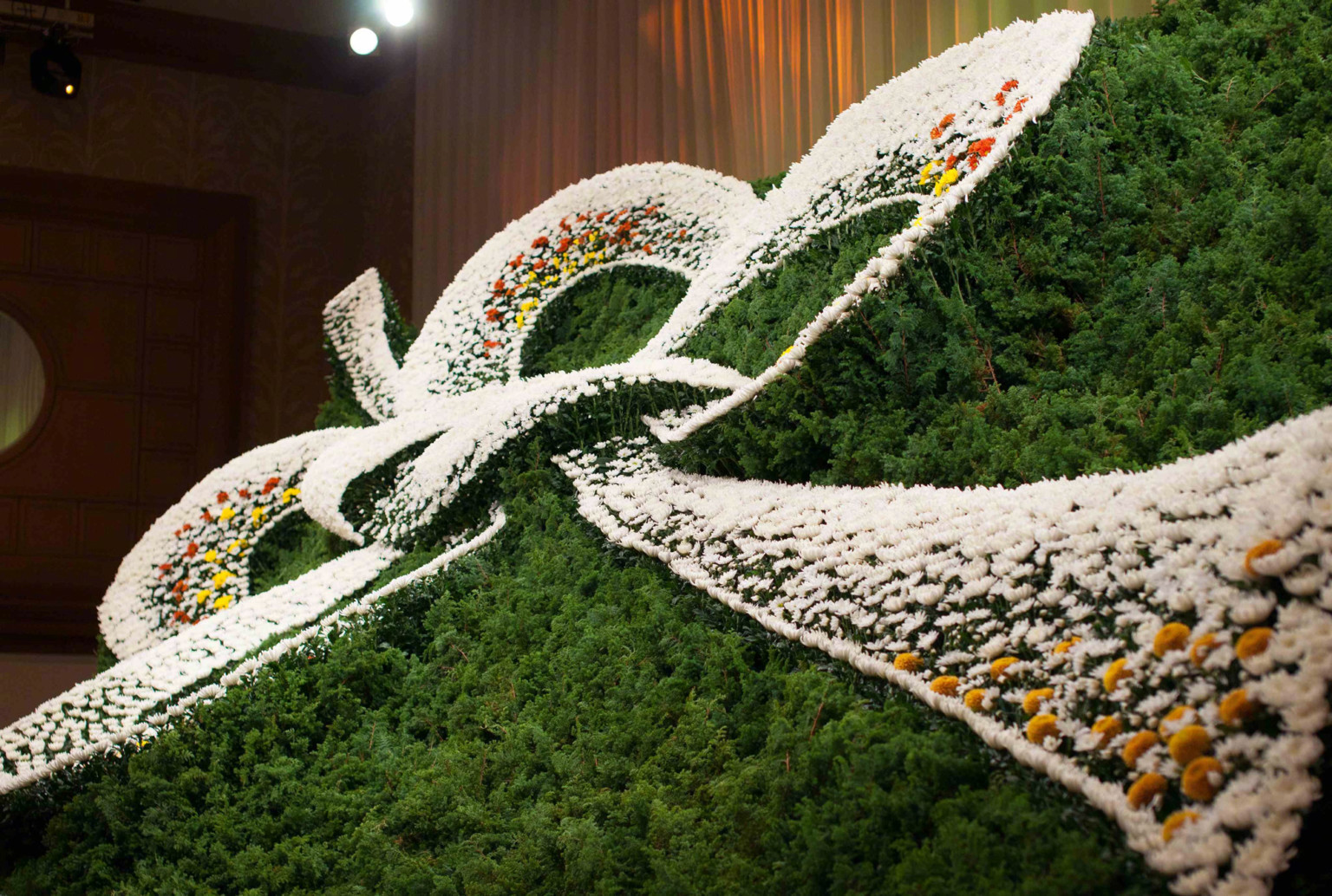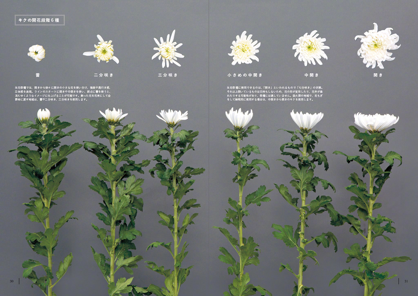 前阵子树木希林老太太仙逝,葬礼上的花艺很动人。查了一下,这叫“祭坛生花”,是殡仪里重要的部分。看看图六,把白菊的花按绽放程度不同分类,真是把花朵当笔触了。