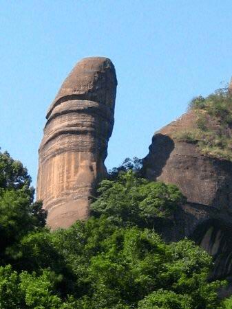 不如到广东韶关的丹霞山膜拜下巨根奇石,