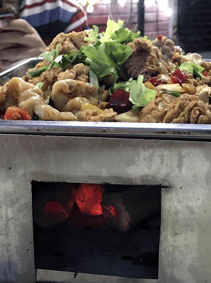 在翻过无数人行道和斑马线后,我终于来到了朋友所说的博美夜市。一片偌大的空地,两端伫立着形形色色的大排档,既有猪肚鸡,又有香辣大虾,光是看招牌,就已经是在刺激自己的味蕾。它就在这里: