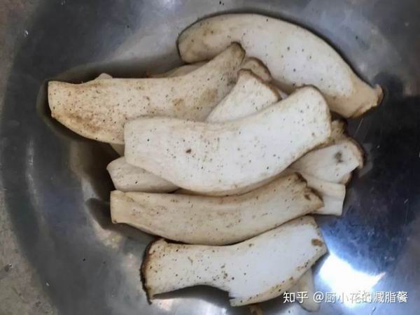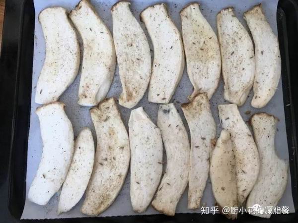 把杏鲍菇排列好,喜欢孜然的撒点孜然粒