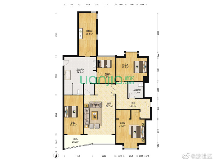@股社区:这是最近我看过的最奇葩的户型,就这还是10万一平米,2000多万总价,槽点太多了