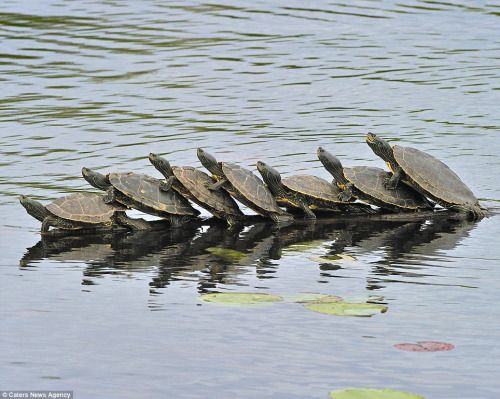 报道称,这些海龟学名为“北部地图龟”。这7只海龟看上去像跳舞,实际上它们是在晒太阳。北部地图龟属温血动物,需要吸收太阳射线中的维生素D补给龟壳和骨头所需养分。