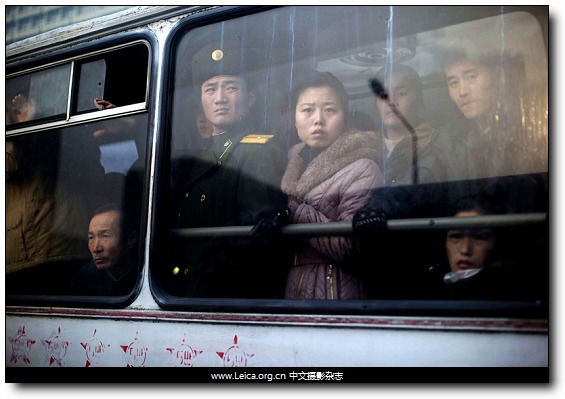 拍摄作品:金正日逝世一周年,搭乘公交车的朝鲜民众,平壤。