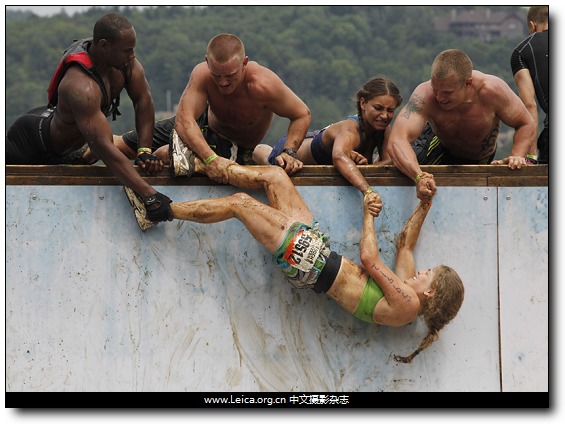 拍摄作品:“Tough Mudder 比赛中,4名参赛者在帮助另一名参赛者逾越障碍。”