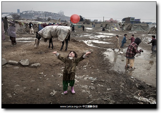 拍摄作品:“在难民营玩耍的小女孩,阿富汗。”