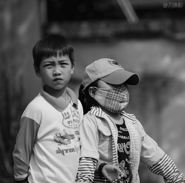 在河内,因为大量摩托车的废气污染,出门戴口罩已成为大多数人的共识,连孩子也不例外