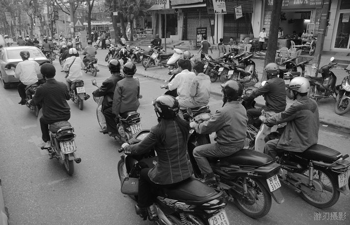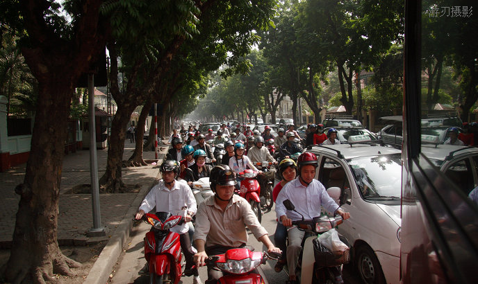 图七 在越南,导游告诫最多的一句话是:尽量别过公路,小心车!