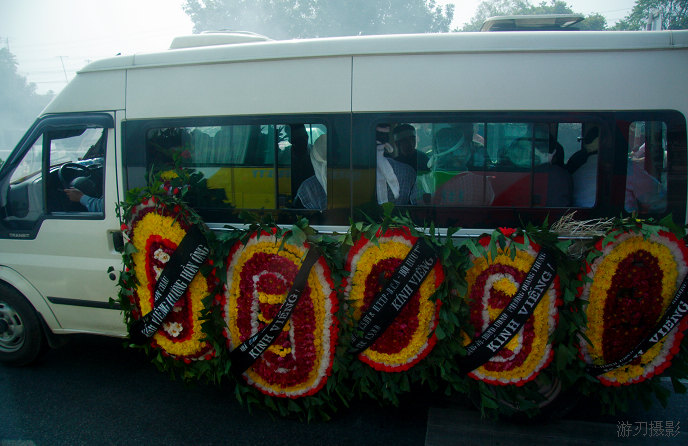 越南花多,所以花店似乎比饭店还多,连殡藏车上的两侧都戴满鲜花