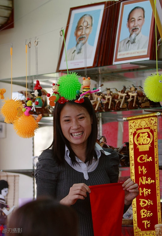 每有游客经过,她都像发名片一样,把笑送给每一位看她(特别是看货)的人