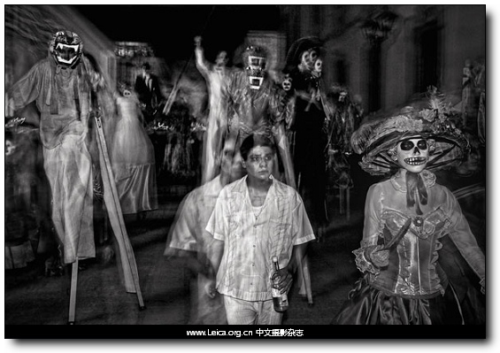 『获奖作品』“墨西哥死亡节,El dia de los Muertos ”,黑白与长时间曝光为照片带来了一种特殊的诡异气氛
