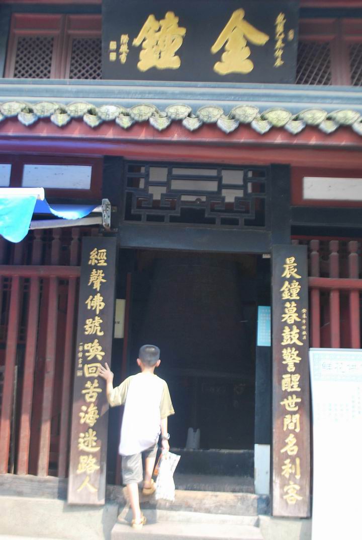 每到一景点,我惯例都要宗峰诵读所见的匾额和楹联。读到里进主殿大门联时,有一字宗峰不懂,我也辩不出,便让他去请教檐下的和尚师傅。和尚师傅说那叫“乘”字,对联是:教有万法体性无殊不可捨法取法非法非非法;佛本一乘根源自别下乘中乘上乘上上乘。弄懂了字,旁边的一位在寺里卖香烛的老者,给我们解释起这联的涵义,直说得我心里啧啧赞叹。老者说:法即佛法,非法即佛法以外的教派或宗教,不能因信奉佛法而否定了其他的教派或宗教,因为所有宗教都是殊途同归的。不应有所取舍和互相否定。而佛的一切教法都是互不相违的,因此不可互相抵毁,若取上上三乘五道,必须完具下下乘道功德种类。总的来说,就是不可执着,而应以包容大度的心态、循序渐进地修佛。