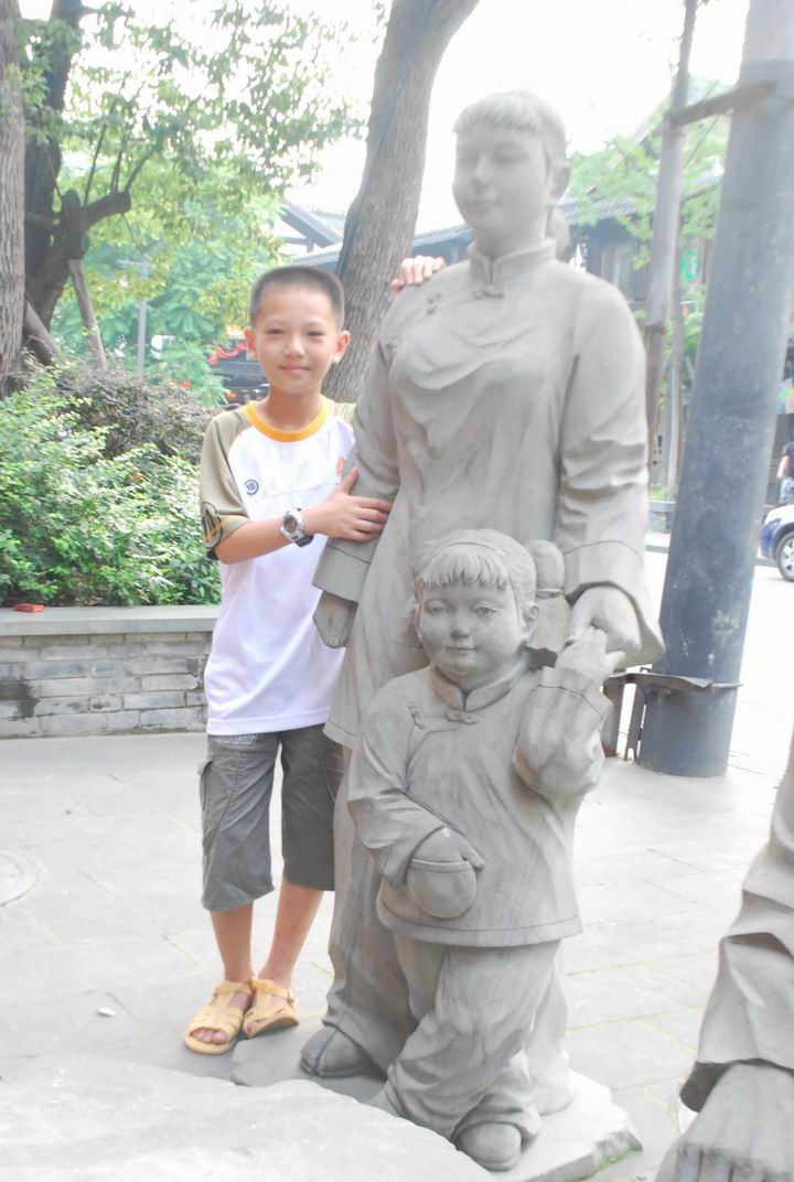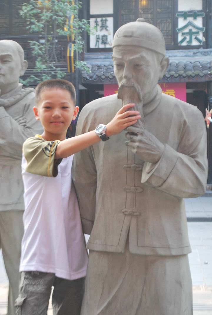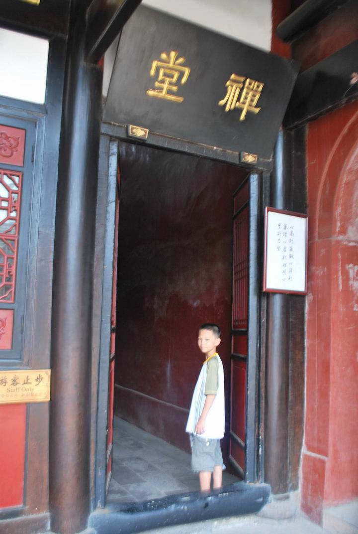 我们游文殊院除了旅游资料以及老秦的推介外,还带有一点功利目的。因为在佛教里文殊菩萨掌管智慧,怎能不带小小读书郎来身受些智慧菩萨的灵气呢。