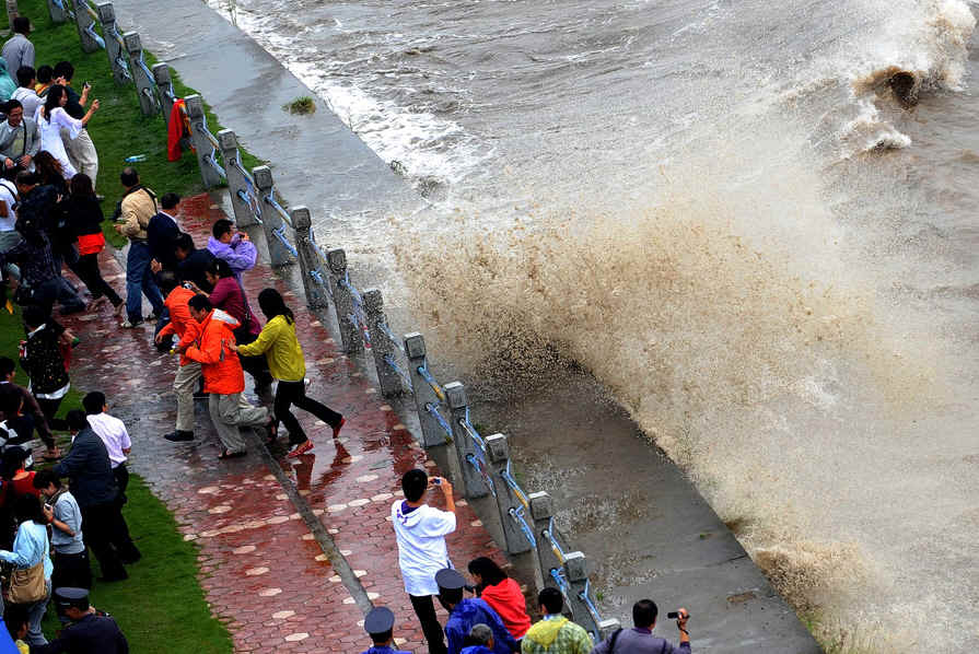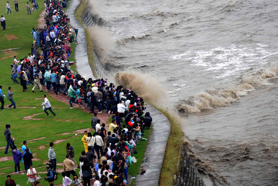 9月23日是秋分节气,又值中秋假日,上万中外游客来到浙江海宁市盐官观潮景区观看钱塘江大潮。钱塘江大潮号称“天下第一潮”,中秋前后是观看钱塘江潮的最佳时机,每年都会吸引数十万中外游客前来观看。