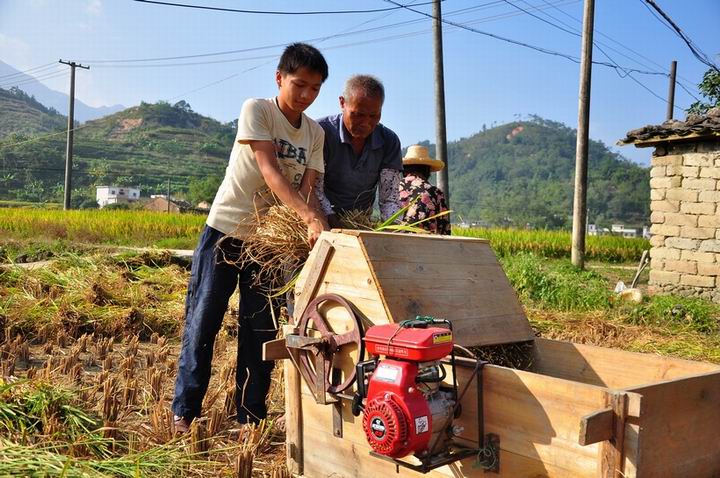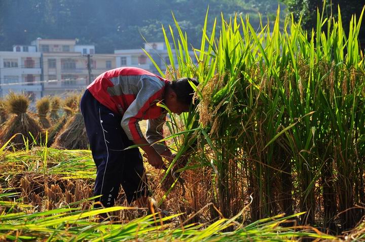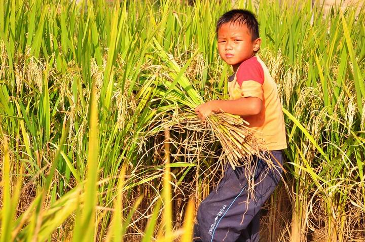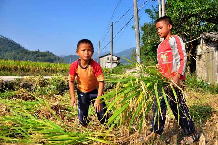 该让俺儿子看看两位割禾的小哥哥