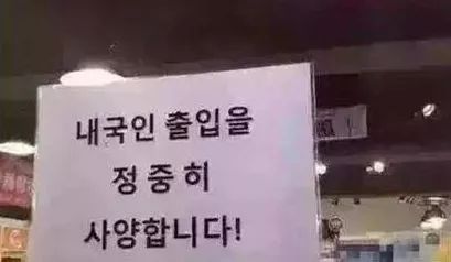 韩国明洞,免税店窗口贴着标签:谢绝韩国人入内