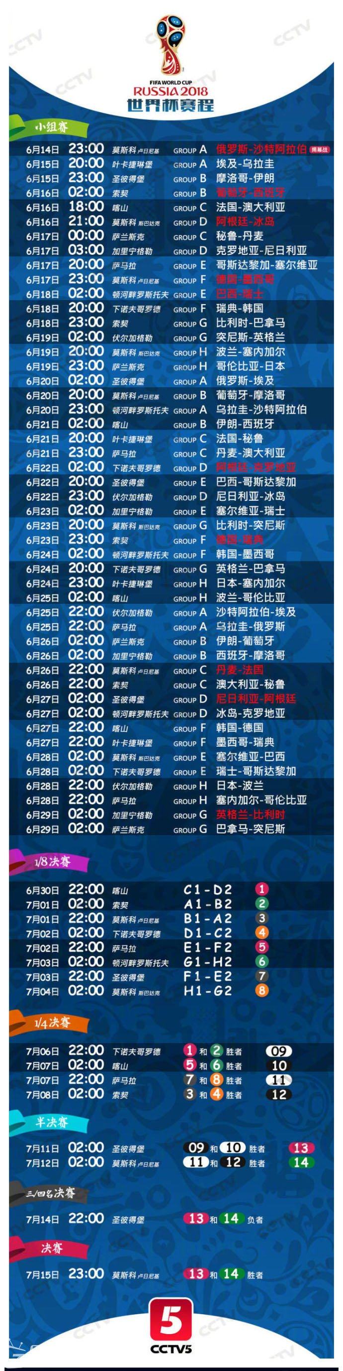 2018世界杯赛程