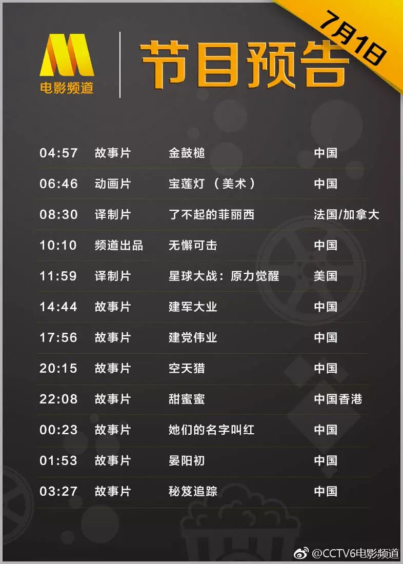 或许这些都只是巧合,但巧的还有在CCTV6电影频道此前发布的一份节目单中显示,7月1日晚20:15分播放由李晨执导,范冰冰主演的电影《空天猎》,可是播出当晚,该时段影片由《开天辟地》所代替。