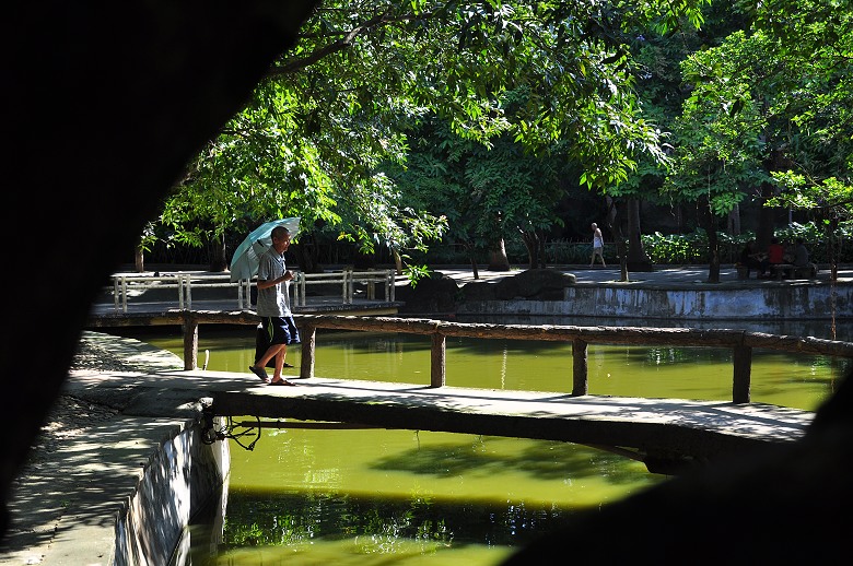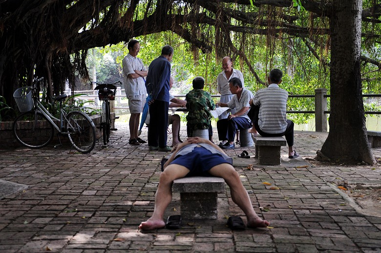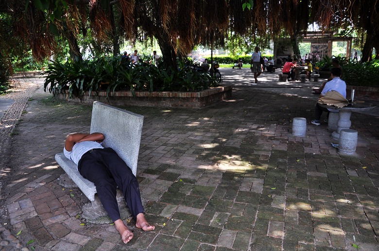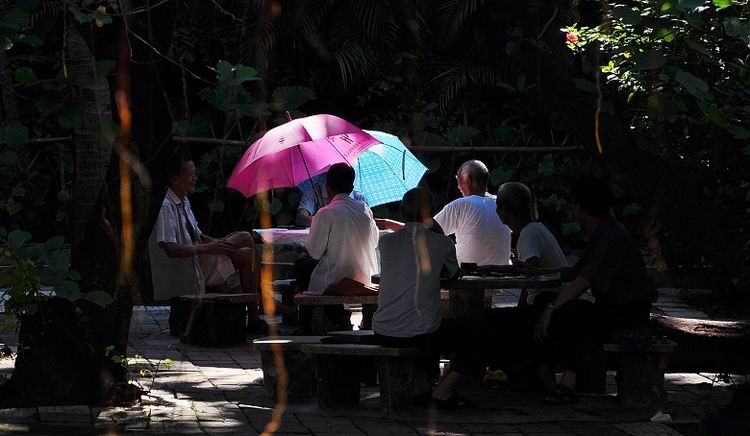 周日太阳猛烈,气温高,各大公园都成了人们避暑的圣地。