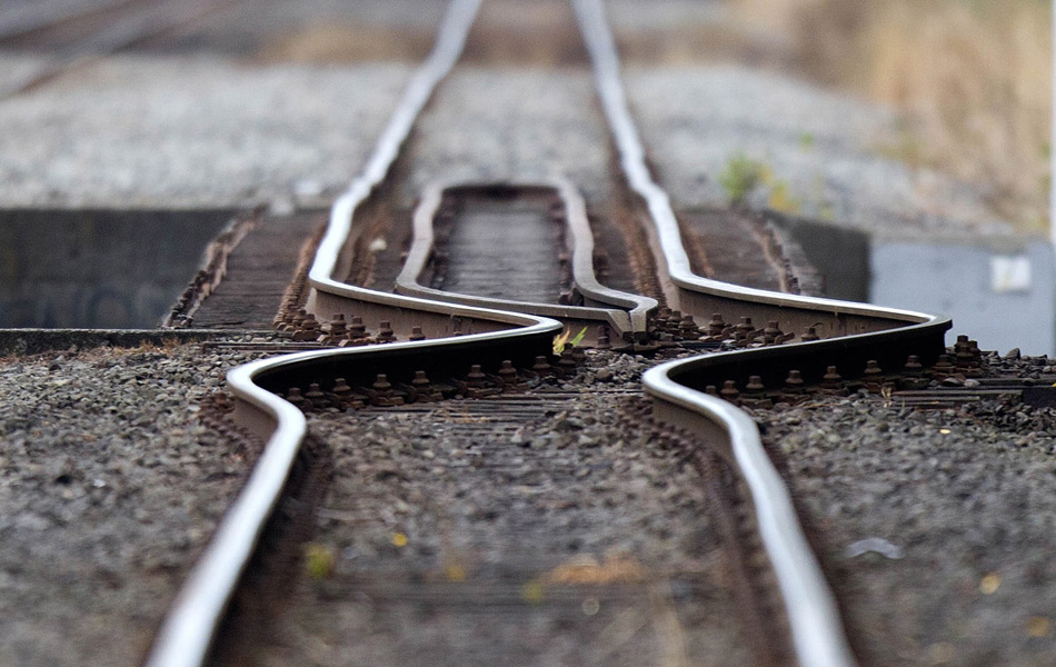 当地时间2011年2月23日,新西兰基督城,一段被地震扭曲的铁轨。2月22日,新西兰发生6.3级地震。 Marty Melville/摄