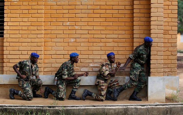 当地时间2011年4月19日,科特迪瓦象牙海岸,支持库里巴利的士兵参加伏击演习。 Rebecca Blackwell/摄
